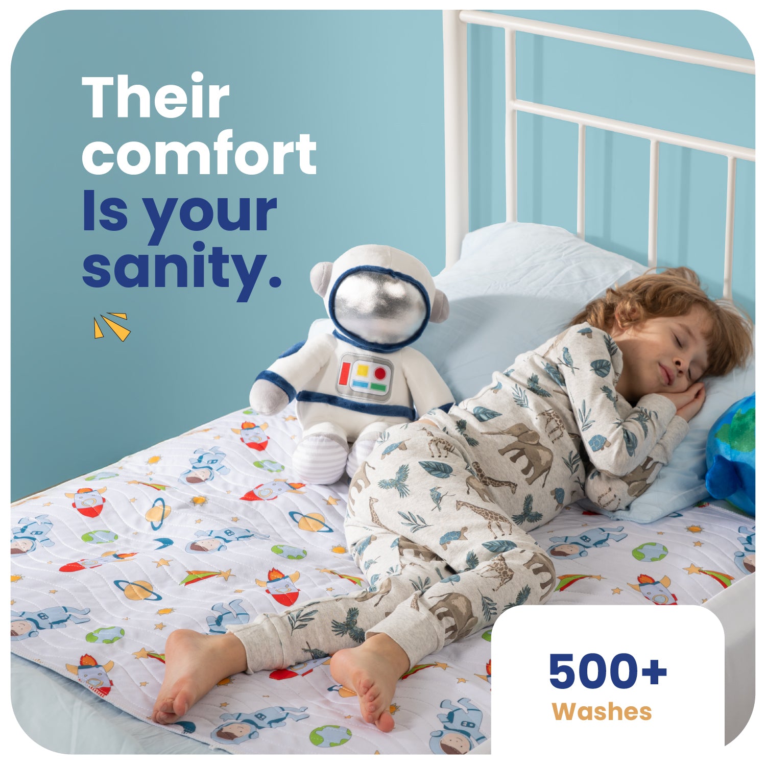 Features a built-in waterproof barrier that keeps your child’s mattress dry—even during heavy leaks. No mess. No worries.