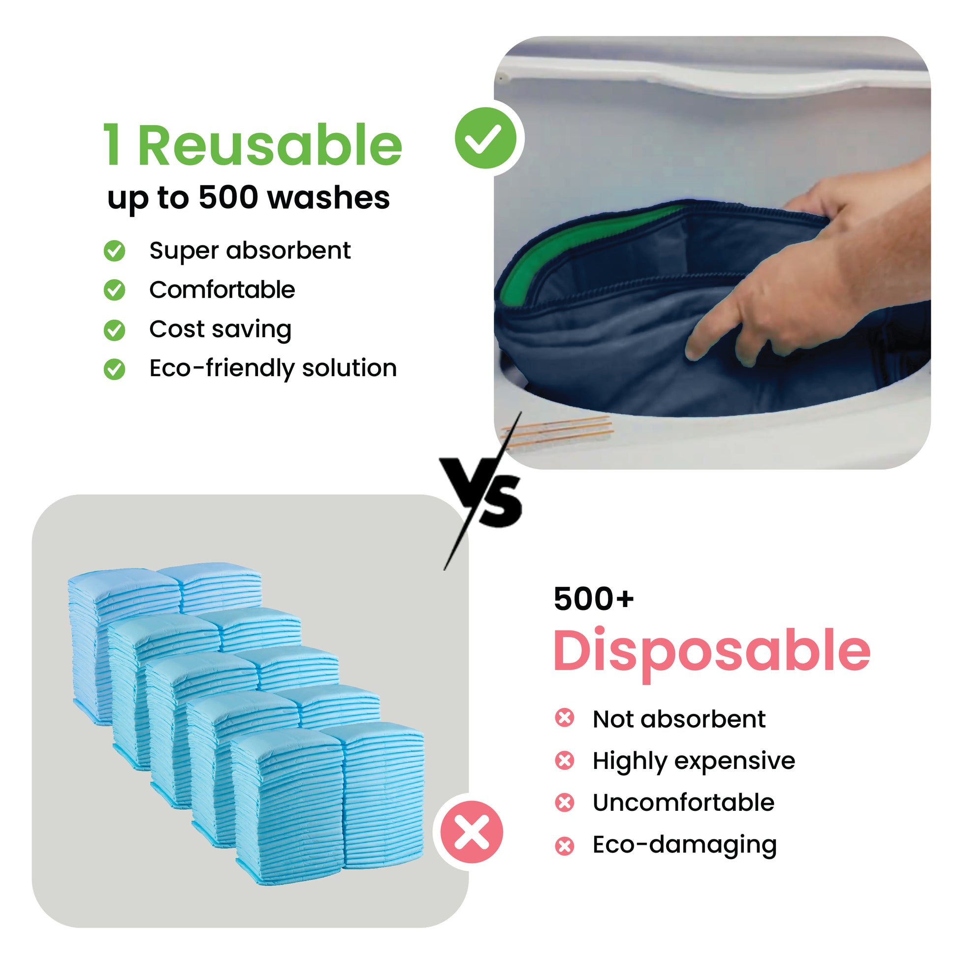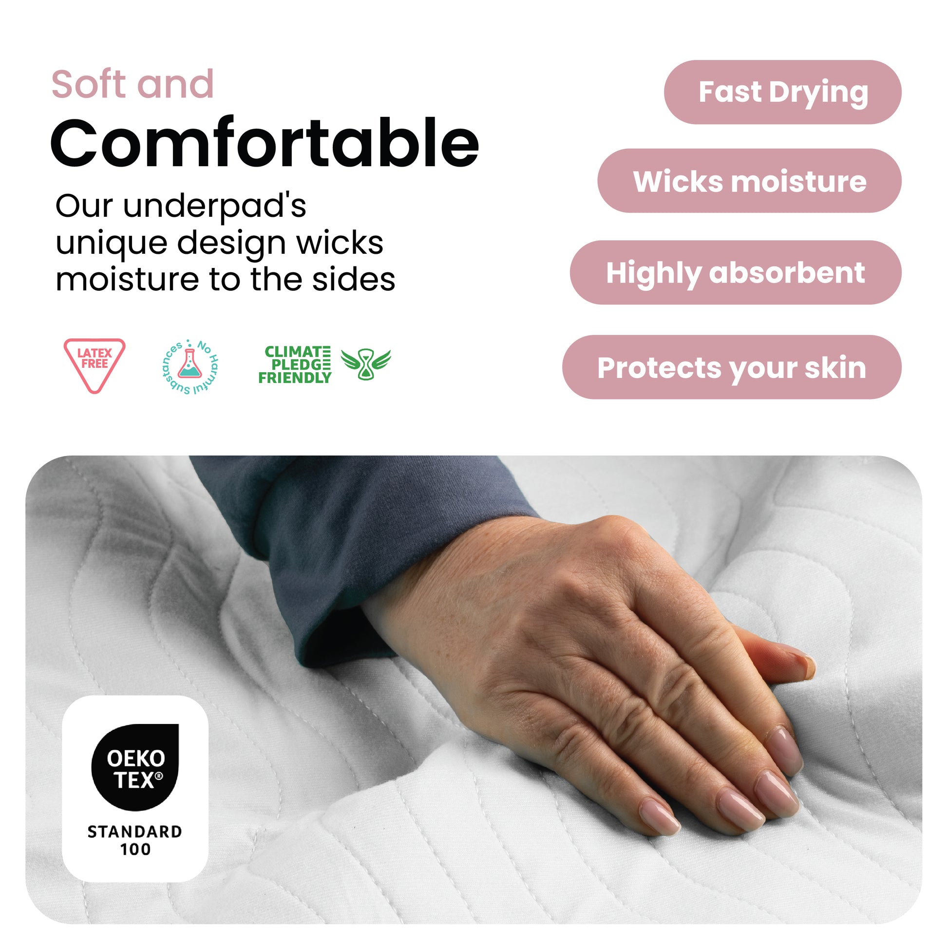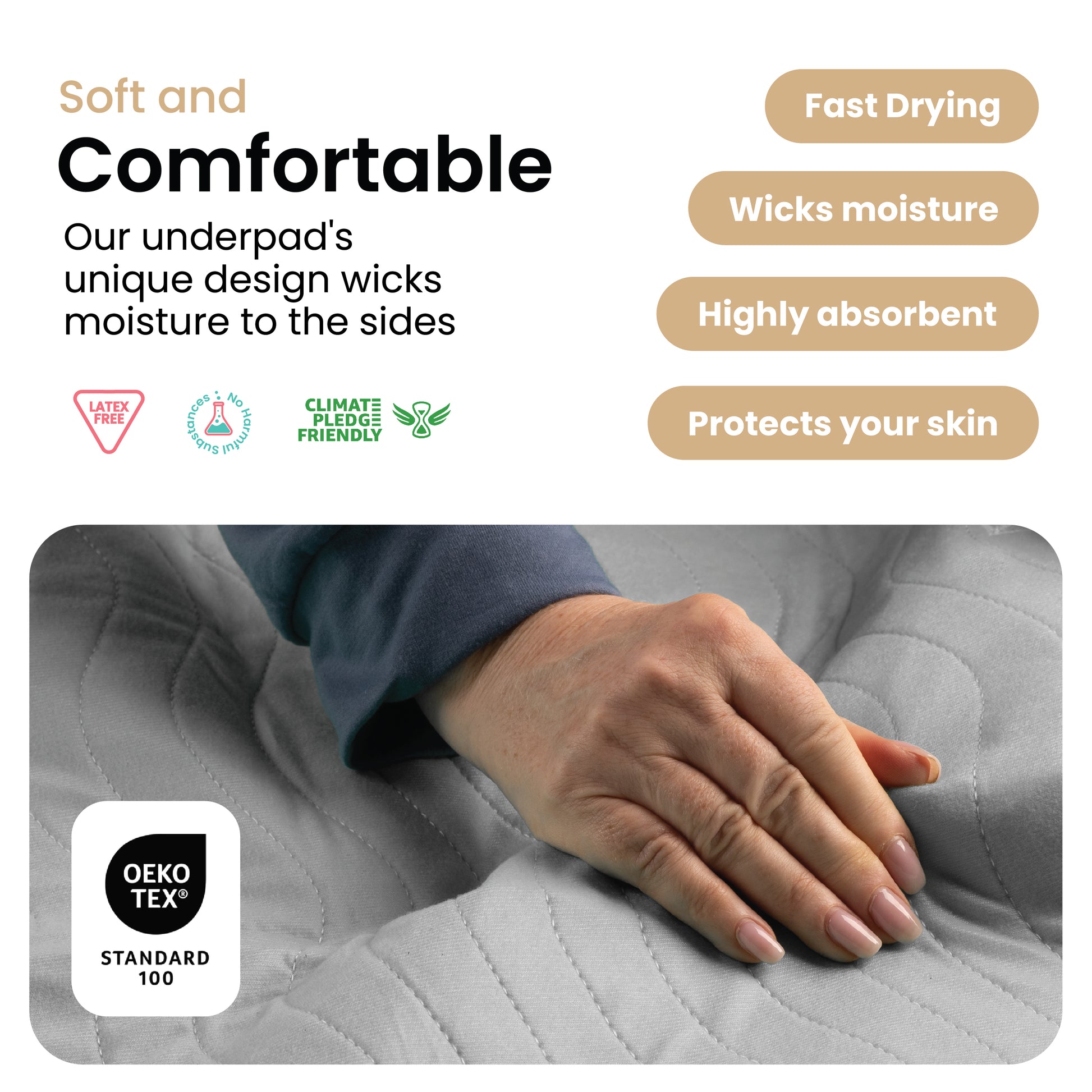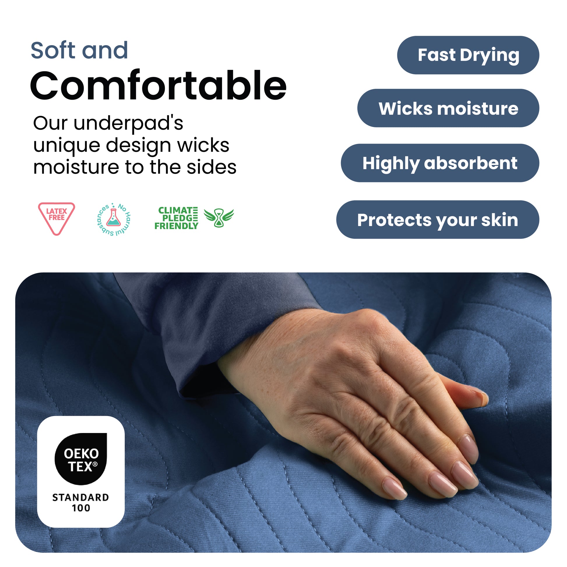 Non-toxic, OEKO-TEX® certified, and machine washable. A smart, sustainable alternative to single-use underpads.
