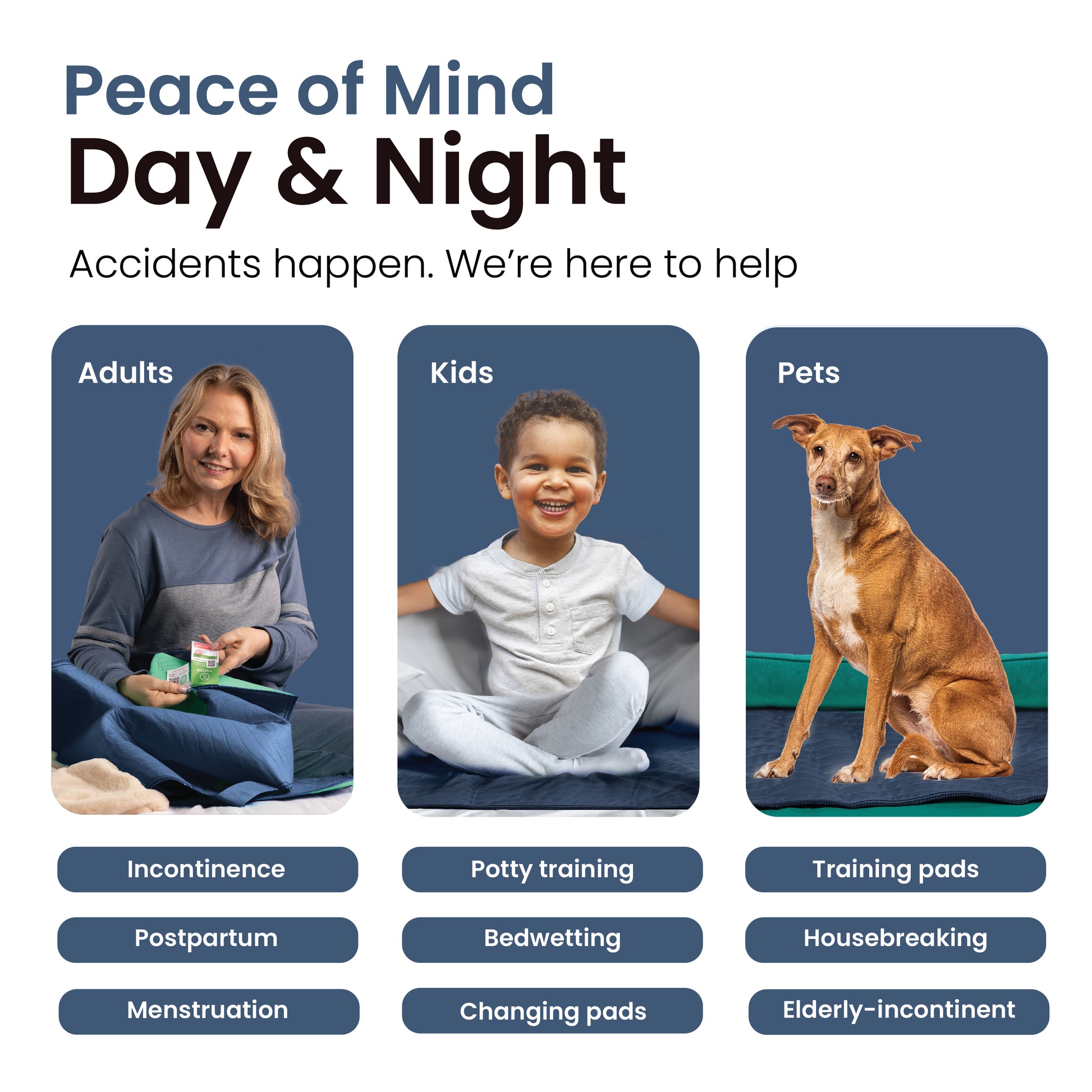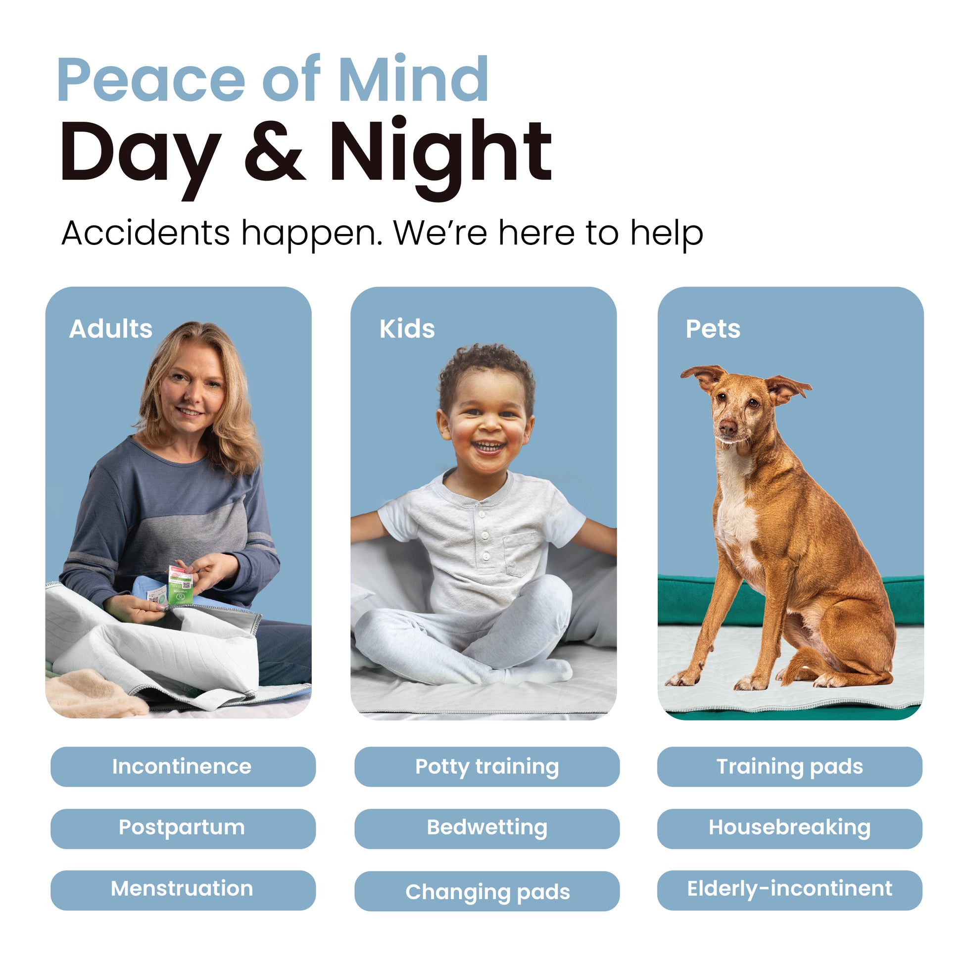 Designed to stay dry even during use. Our innovative Underpads allows moisture to evaporate quickly, so the pad naturally dries itself in just minutes, keeping you comfortable around the clock.